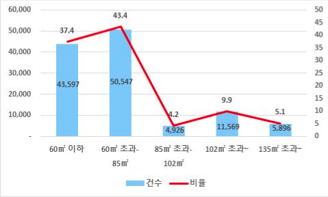 주택 규모는 대부분 20~30평대로 60m2 ~ 85m2에 해당하는 경우가 43.3%로 가장 높았습니다.