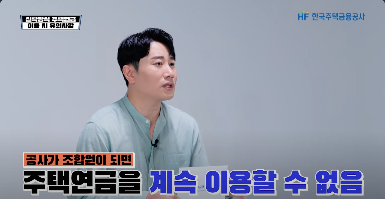 주택연금을 신탁방식/저당권방식 중 어떤 방식으로 가입하더라도 가입 이후에 전환이 가능하지만, 전환하는데 드는 비용은 가입자 부담입니다. 되도록 전환을 할 일이 없는 것이 좋겠죠? 아래 주택금융공사에서 신탁방식 주택연금에 대한 유튜브 영상에서 알려준 유의사항 1가지만 알려드리겠습니다.